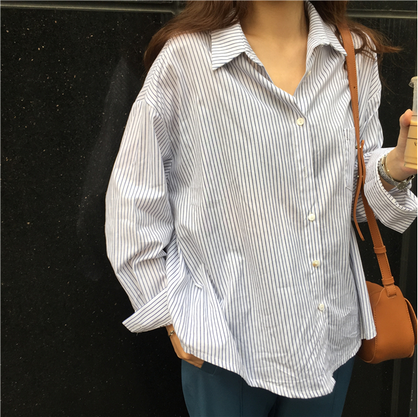 早秋女裝韓版簡約百搭寬松學生翻領(lǐng)排扣襯衫